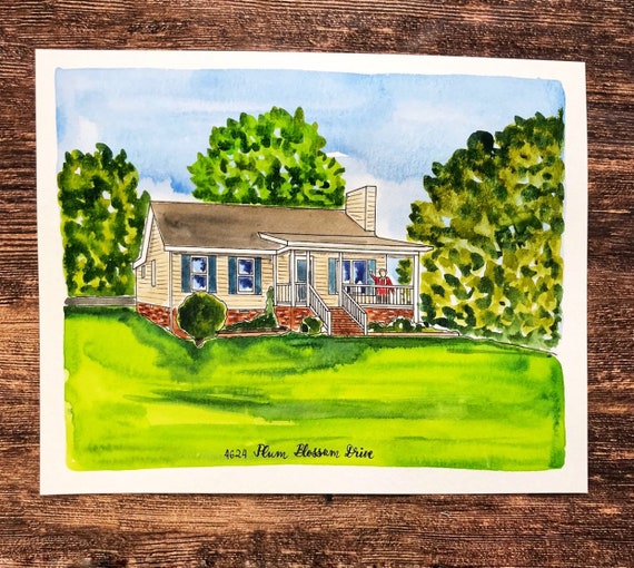 Watercolor House Portrait Home Drawings Custom House Painting Etsy